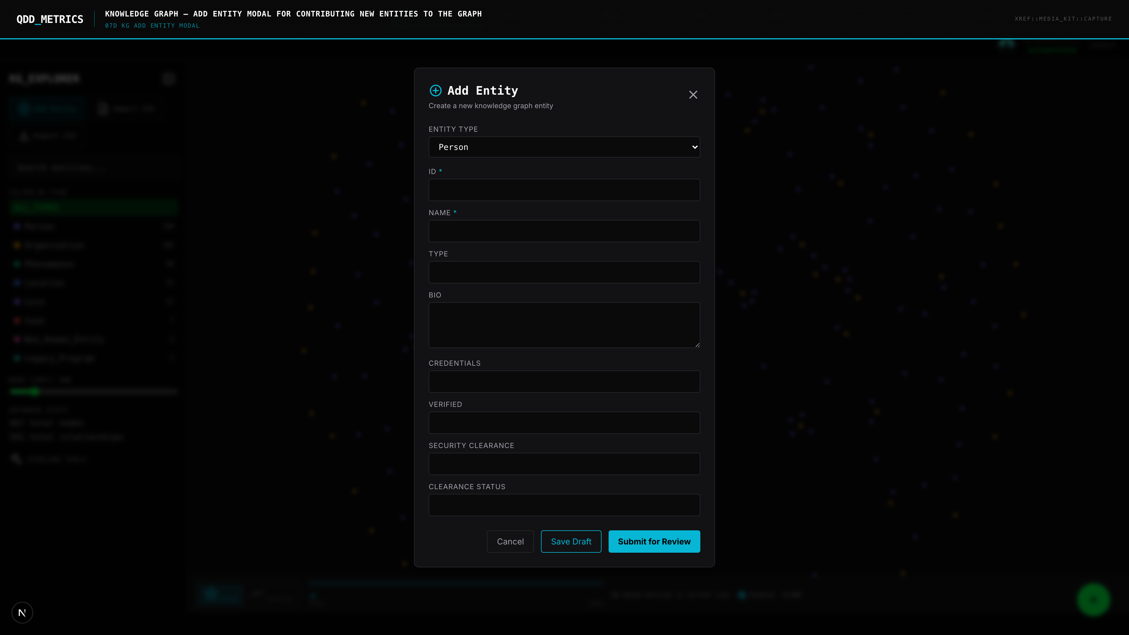 Graph Expansion. New entity and relationship proposals. If you have domain expertise in specific UAP cases, historical programs, or institutional structures, your knowledge can be encoded as graph data.